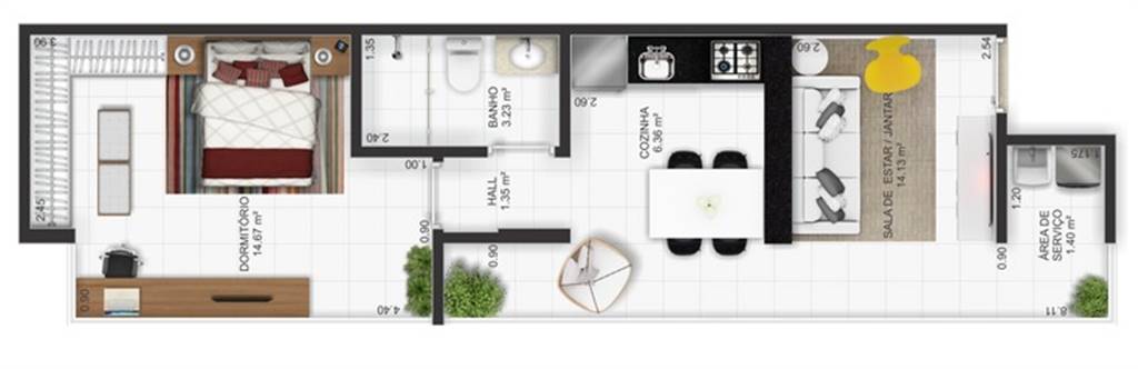 Área Útil44,75m²